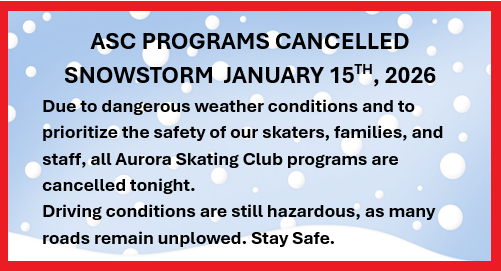Not-for-Profit Club Teaching Skating in Aurora for over 72 years! ALL PROGRAMS CANCELLED TONIGHT JAN.15TH ADULTS & TEENS 13YRS+ REGISTRATION STILL OPEN